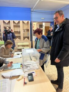 Rafael Guía, alcalde de Andorra, secretario general del PSOE Teruel y cabeza de lista a las Cortes de Aragón por la provincia de Teruel en estas elecciones autonómicas ha votado en una de las mesas situadas en el Colegio Público Juan Ramón Alegre de la localidad minera junto a su madre, Teresa Marqués, a la que en distintos momentos de la campaña ha definido como su “referente vital”, destacando que hoy se vota “por Aragón, por la calidad de los servicios públicos como la sanidad o la educación”.